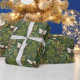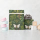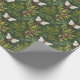 A charming pattern of bees, lush green foliage, and red berries on a dark green background, creating a vibrant and nature-inspired design.
