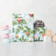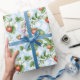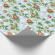 Belo papel de bobina de noiva com um morango e uma listra azul e branca floral.