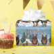 This festive design captures the joyful spirit of the holiday season, featuring an adorable dogs.Nestled in a winter wonderland, complete with a decorated Christmas tree, and beautifully wrapped presents. Snowflakes gently fall, adding a magical touch to the scene, while the vibrant colors of the holiday decorations create a warm and cheerful atmosphere.