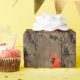 Pássaro vermelho incrível nos ramos de um morto ou árvore de queda com folhas marrons. O fundo faz o vermelho vivo das penas das aves se destacar e pop.