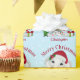 Um lindo Elefante de Bebê Feliz papel de embrulho de Natal. Design apresenta um lindo elefante bebê vestindo um chapéu vermelho de Papai Noel segurando uma cana doce com árvore de Natal e presentes junto a ela. . Todo o texto pode ser alterado conforme necessário. Personalize com um título e adicione um nome personalizado. Um presente de Natal de excelente para um bebê na época de férias.