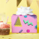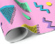 Belo e brilhante, este papel de embrulho apresenta um design dos anos 80 com formas coloridas em um fundo rosa. A impressão é vibrante, nítida e animada. Disponível em vários estilos e texturas. Faça seu pedido hoje mesmo!