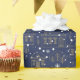 Este papel de embrulho apresenta um belo padrão da cidade de inverno em cores azuis e douradas.
