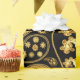 Papel De Presente Belo padrão preto e Dourado de Paisley