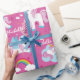 Papel De Presente Belo unicórnio Feliz aniversário, rosa