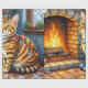 Papel De Presente Bengal Cat Fireplace with Christmas Lights