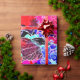 Um design de abstrato de frutas e folhas em cores vibrantes.