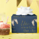 Texto Dourado e pegadas de bebê em um fundo azul marinho. A cor de fundo pode ser alterada.