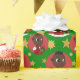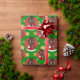 Papel de embrulho de Natal com uma ilustração de um bebê afro-americano sorridente segurando um presente de Natal; num círculo vermelho com estrelas, um design de Natal com modelo de texto editável para o seu nome ou mensagem