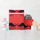Staching através da neve - o gráfico engraçado do bigode do hipster em umas bolinhas do vermelho pontilha o papel de envolvimento do feriado do Natal do fundo.