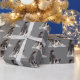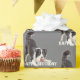 Cachorro collie de fronteira com cinzas, com texto de aniversário feliz branco. A cor de fundo pode ser alterada.