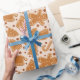 "Biscoitos Brincadeiras Festivas de Natal Papel de Enrolar Presente" mostra biscoitos de pão de gengibre, perfeitos para embrulhar presentes com uma sensação de Natal clássica e confortável.