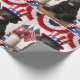 This patriotic gift wrap keeps things simple, cheerful, and right for the occasion. The design features a smiling black Labrador puppy in an Uncle Sam hat, with American flags and classic red, white, and blue bunting—recognisably American without going over the top.