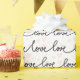 Celebrate your special occasions with this unique and cute wrapping paper that features the word 'love' written over and over in a black cursive decorative font against a white background with faded pink hearts. Perfect for weddings, birthdays, anniversaries and Valentine's Day.