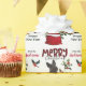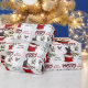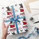 O padrão repetido neste belo papel de embrulho de Natal é uma imagem de um adorável cão Terrier escocês espiando-se de um saco de presentes de Natal. Atrás dele está um sorvedouro de bagas sagradas e vermelhas. Um pássaro toucinho vermelho e preto está prestes a pousar. O texto da xadrez de búfalos vermelho e preto estilizado diz MERRY CHRISTMAS", e "Feliz ano novo" está em verde-escuro. Sua própria assinatura está em dois campos para você personalizar. Certifique-se de ver as etiquetas de presentes correspondentes.