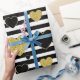 Papel De Presente Black Stripe Gold Heart Glam Pattern (7)