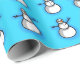 Blaues-, Weihnachtsgeschenkpapier mit süßen Schneemännern.