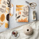 Um design de outono vibrante, com grandes flores florais de tona quente cercadas por um conjunto de folhas delicadamente ilustradas. Os amarelos do ouro, as laranjas queimadas e os browns profundos capturam a essência da beleza esmaecida do outono. As samambaias e ramificações suaves adicionam textura a este padrão equilibrado, com cada elemento fluindo organicamente contra um fundo macio e neutro. A interação de cores e motivos naturais evoca um encanto sereno e rústico.