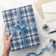 This cute gift wrap paper features a classic gingham plaid in shades of blue and cream.