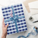 Sweet and stylish gingham wrapping paper in baby blue, navy and white. Perfect for birthdays, baby showers, bridal gifts, spring celebrations, and thoughtful packaging.