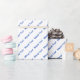 Papel de enrolar com "Mazel Tov!" azul (parabéns) sobre fundo branco. Personalizável. Perfeito para comemorações judaicas incluindo casamentos, nascimentos de bebês, Bar Mitzvah ou Bat Mitzvah.
