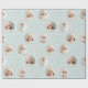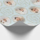 Christmas gift wrapping paper feature modern Merry Christmas script and botanical leaves wreaths, with personalized family name and 6 photos in winter blue and gold. simple and elegant.