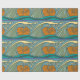 Papel De Presente Blue Ocean Waves Nautilus Seashell Patterno Nouvea