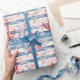 Papel De Presente Blue Red Anchors Floral Stripes Beach Birthday