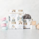 This design features a repeating pattern of classic Santa figures in a trendy muted blue and beige palette, offering a fresh take on traditional Christmas colors. The neutral background and sophisticated color scheme make this paper perfect for gifts under a modern, rustic, or pastel-themed Christmas tree. It’s ideal for those who love traditional holiday imagery but prefer a softer, more elegant aesthetic than the typical bright red and green. Design by Anna Szalacha © Happy Ann Designs.