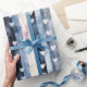 Papel De Presente Blue White Denim Heart Stripes Birthday