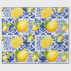 Papel De Presente Blue White Lemon Tile Pattern Mediterranean Citrus