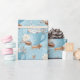 Papel De Presente Blue Winter Hot Cocoa & Macaron Pattern