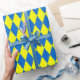 Papel De Presente Blue Yellow Harlequin Checkered Design