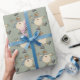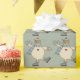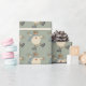Neve galantejeira branca está vestindo um chapéu, mitenes e cachecol que são azuis, brancos e verdes listrados, com curvas. Ele está dançando em suas botas azuis e bronzeadas.