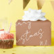 Papel de embalagem básico, de cor simples. Um pastel boêmico moderno marrom com Feliz Natal em letra manuscrita impressa em padrão repetitivo. Bohemian Brown Feliz Papel De Molho De Natal.
