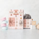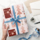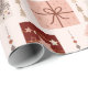 A delicate and pretty pink boho pattern with intricately wrapped gifts, celestial garlands, and festive holiday trees and candles.