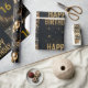 Faça com que seu presente se destaque com este papel de embrulho de aniversário personalizável, elegante e moderno. O design apresenta um padrão luxuoso de texto "FELIZ ANIVERSÁRIO", balões brilhantes e o número personalizável "16" em um fundo preto sofisticado com brilho dourado e efeitos de explosão de estrelas. Este embrulho de presente único adiciona um toque de luxo e glamour a qualquer presente e é perfeito para qualquer celebração de aniversário.