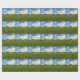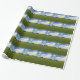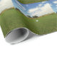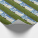 Foto de uma bola de golfe no verde com uma bandeira de golfe a distância.