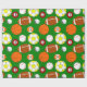 Este papel de embrulho tem um design de novidade de diferentes bolas esportivas, incluindo bolas de basquete, bolas de beisebol, bolas de bilhar, bolas de futebol, bolas de futebol e bolas de golfe.