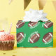 Papel de embrulho Bolas de Futebol Americano Nome Verde Natal. Personalize com o seu nome. Você pode alterar o texto Feliz Natal.