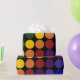 Linhas de bolinhas coloridas do arco-íris cobrir fundo preto. As linhas offset formam diagonais de cada cor: violeta, índigo, azul, verde, amarelo, laranja e vermelho. Imagem criada digitalmente. Copyright © 2011 Claire E. Skinner. Todos os direitos reservados.