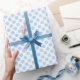 Um bonito padrão de inverno de bolinhas azuis pálidas sobre fundo branco.