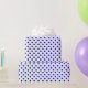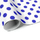 Um papel de embrulho construído com um padrão de bolinhas azul real com uma distância média entre os pontos sobre um fundo branco. Personalize o fundo branco entre outras opções.