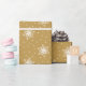 Enrole seus presentes de Natal ou feriados neste clássico papel de embrulho branco com formato de floco de neve, mude o fundo dourado para suas cores favoritas para misturar e combinar para uma apresentação divertida.
