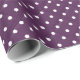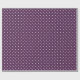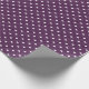 Bolinhas brancas sobre fundo roxo com efeito de costura colado.