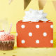 Um papel de envolvimento construído com um teste padrão de bolinhas branco com uma grande distância entre os pontos em um fundo alaranjado brilhante. Personalize o fundo alaranjado em uma forma facil.
