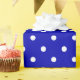 Um papel de envolvimento construído com um teste padrão de bolinhas branco com uma grande distância entre os pontos em um fundo dos azuis marinhos. Personalize o fundo dos azuis marinhos em uma forma facil.