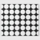 Bolinhas brancas e escuras sobre fundo preto formam um padrão geométrico distinto. Imagem criada digitalmente. Copyright ©Claire E. Skinner. Todos os direitos reservados.