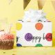 Padrão colorido de bolinhas em fundo branco com texto de aniversário feliz. A cor de fundo pode ser alterada.