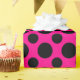 Bonito, chique super, e na moda! Rosa quente e de bolinhas do preto papel de envolvimento do teste padrão para aniversários das meninas